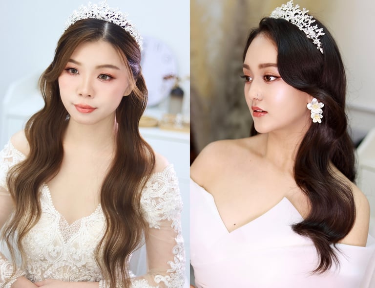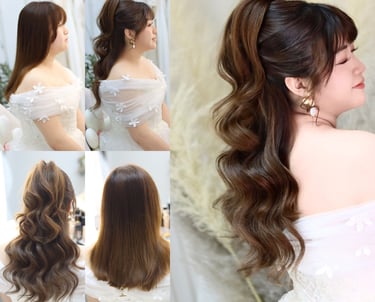 波浪紋披髮:教學重點在於如何捲髮及正確波浪紋處理手法。適用於證婚造型。
