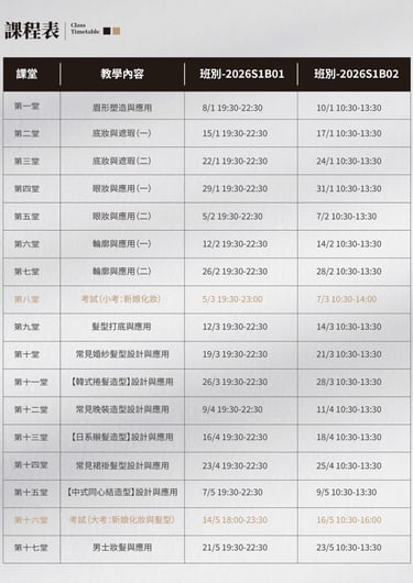 從基礎到高階,幫助學員根據不同的五官特徵,靈活運用所學的妝髪技巧