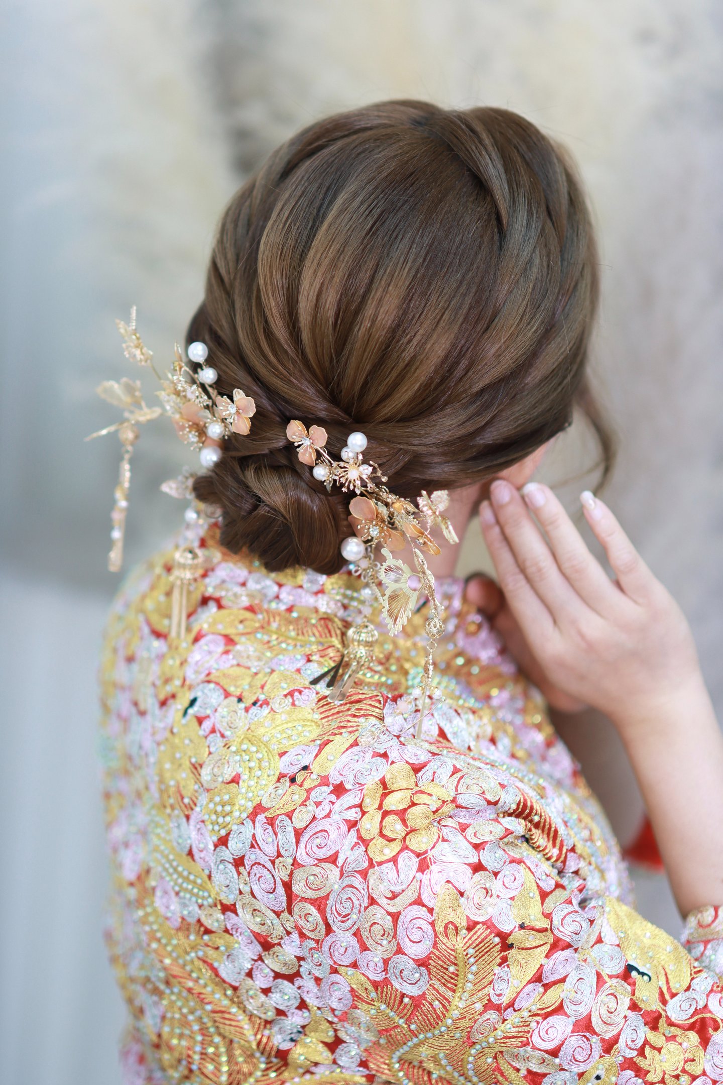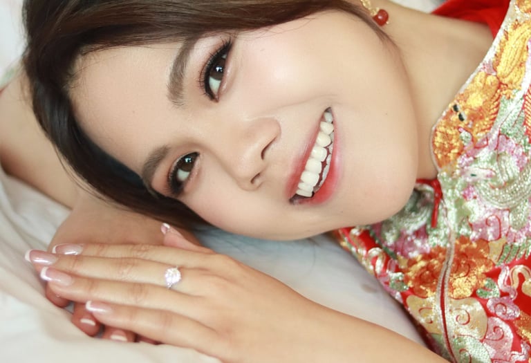 從婚前試妝到婚禮當天的全程跟妝,我們細心關注每一個細節,確保妝容不僅持久、自然,而且完美適合您的個人風格與婚禮主題。每一位新娘的美麗都值得被精心呈現,無論是婚禮儀式的感人瞬間,還是宴會上的華麗進場,我們的專業服務確保您在婚禮當天的每一刻都閃耀動人。婚前試妝過程中,我們會與您充分溝通,根據您的婚禮風格、服裝、臉型和膚色等個人特點,為您精心設計專屬妝容,確保您對最終效果完全滿意。在婚禮當天,我們的全程跟妝服務將隨時為您調整妝容及造型,協助您應對婚禮過程中的每一個環節,無論是室內的光線變化還是戶外的天氣影響,都能確保您的妝容造型在任何環境下都保持完美及上鏡。此外,為了讓新娘在每個拍攝鏡頭中都光彩照人,我們會根據不同場景和服裝需求量身定制最適合的造型,捕捉您最美的瞬間。最重要的是,我們堅持使用高品質化妝產品,保障每一位新娘在安全舒適的前提下,擁有最動人的妝感,讓您在婚禮的每一刻都自信迷人,完美無瑕。