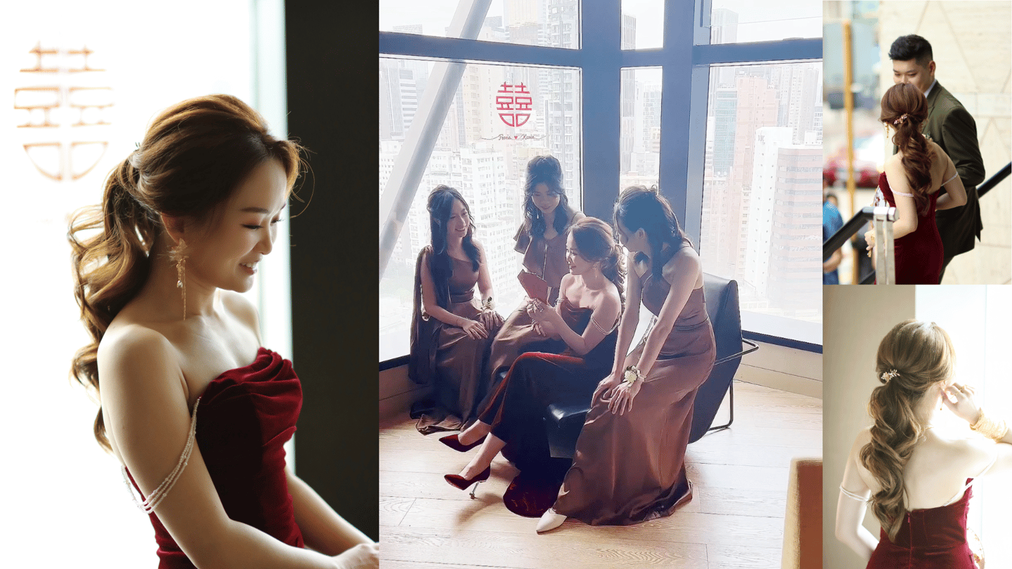 適合流程較長的婚禮,包含全日跟妝服務,從早晨儀式到晚宴結束,化妝師會全程跟隨,隨時進行妝容補妝和造型調整,確保妝容始終精緻完美。此套餐特別適合全天多場景,包括出入門、證婚、外影、迎賓、March in、敬酒等全日婚禮所需的流程,讓您在每個重要時刻都能保持最佳狀態。