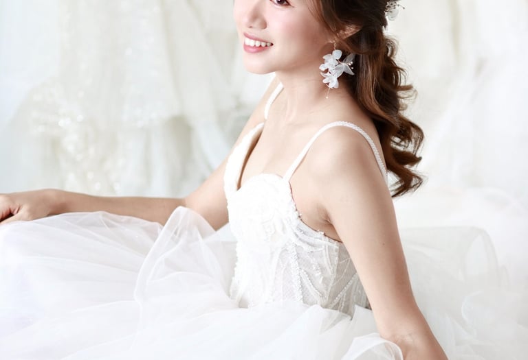 我們的專業新娘化妝服務,以細膩手法打造精緻持久的妝容,無論是優雅浪漫、清新自然,還是典雅簡約風格,都能為您量身定制,讓您的美麗從晨妝到晚宴始終如一。搭配精緻髮型設計,無論是經典盤髮、浪漫捲髮,或是仙氣編髮,都能完美襯托您的婚紗與氣質。我們相信,最好的妝容不是改變,而是放大您的獨特魅力,讓您在最重要的一天,自信綻放最動人的光彩。