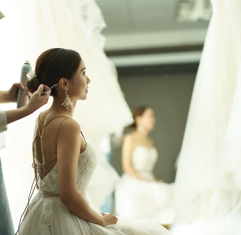我們的專業新娘化妝團隊擅長打造多變風格,讓每位新娘都能找到最適合自己的精緻妝容。無論您偏好清新自然的韓系水光肌、優雅浪漫的日系透明感,還是立體深邃的歐美風格,我們都能完美呈現。從經典復古的紅唇妝容、時尚個性的微煙燻眼妝,到夢幻柔美的花瓣唇彩,我們結合最新彩妝趨勢與專業技法,細緻雕琢每個細節,讓妝容與婚紗、婚禮主題完美呼應,突顯您的獨特氣質,在人生最重要的日子裡綻放極致魅力。