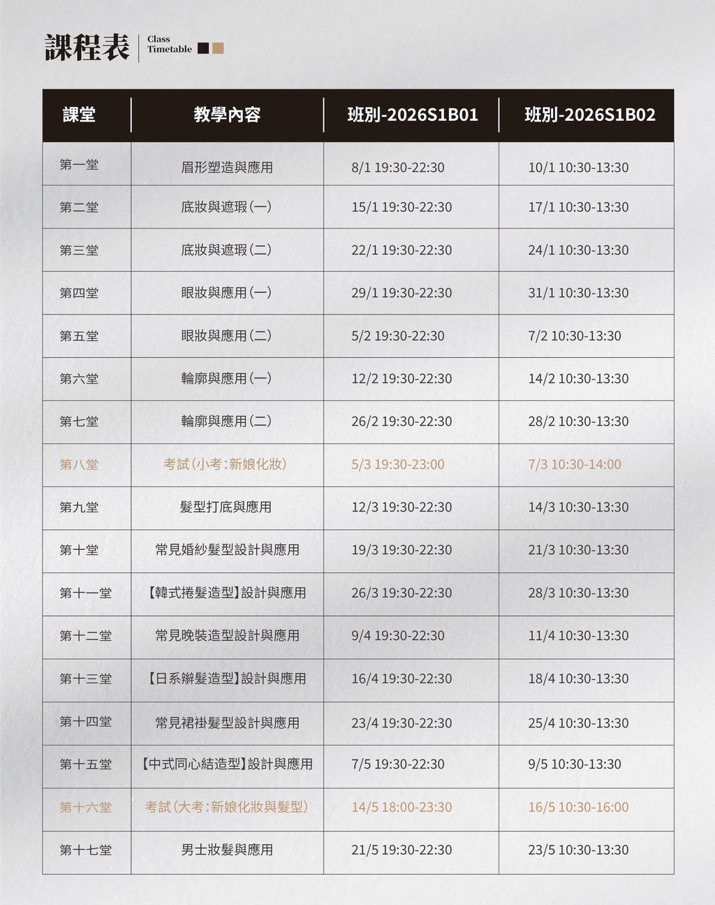 2026S1新娘化妝與髮型綜合課程