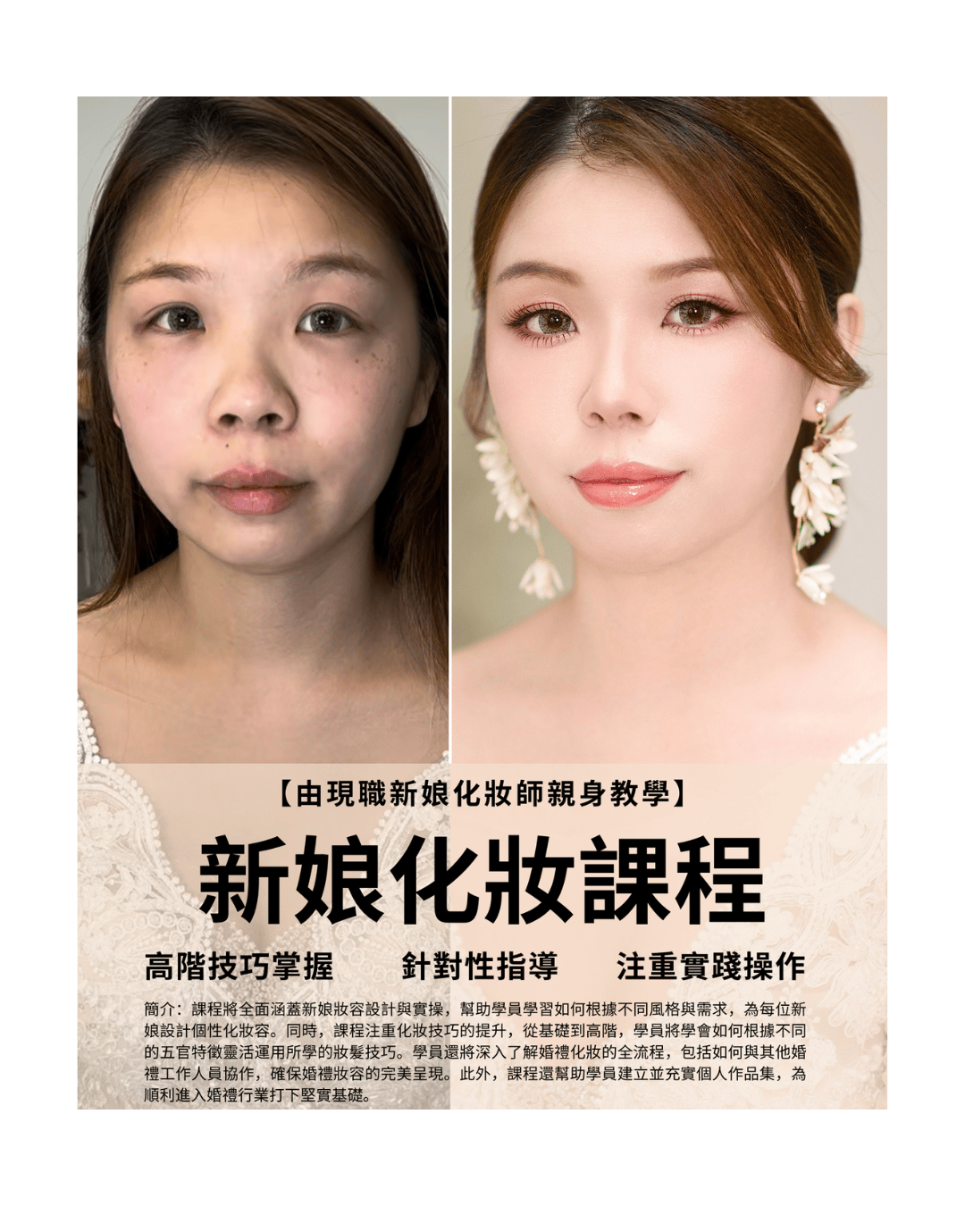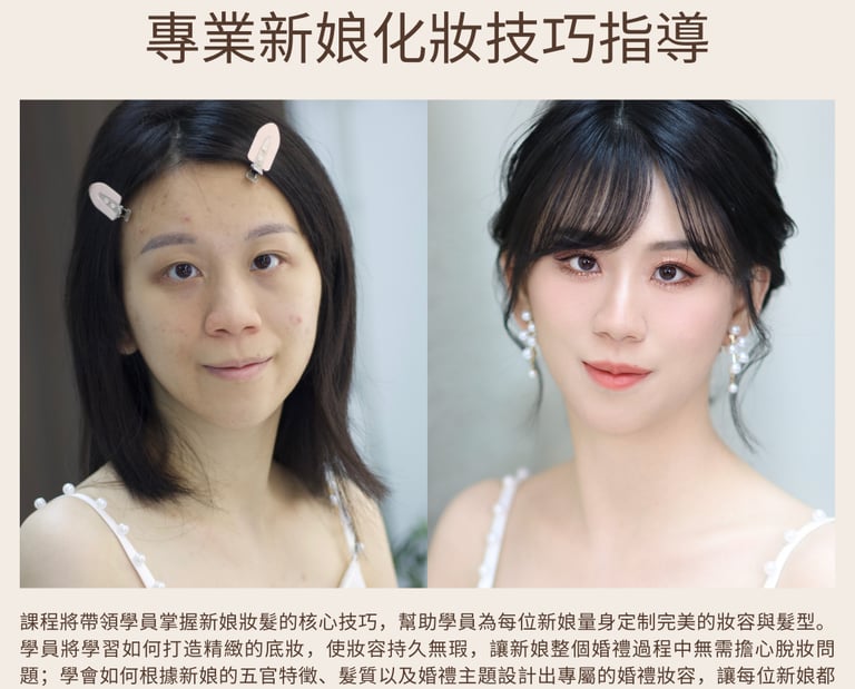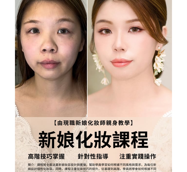 【在職新娘化妝師親自授課 · 課程內容緊貼潮流】