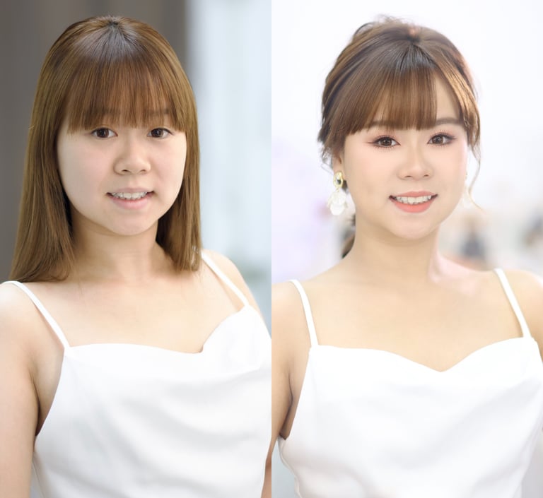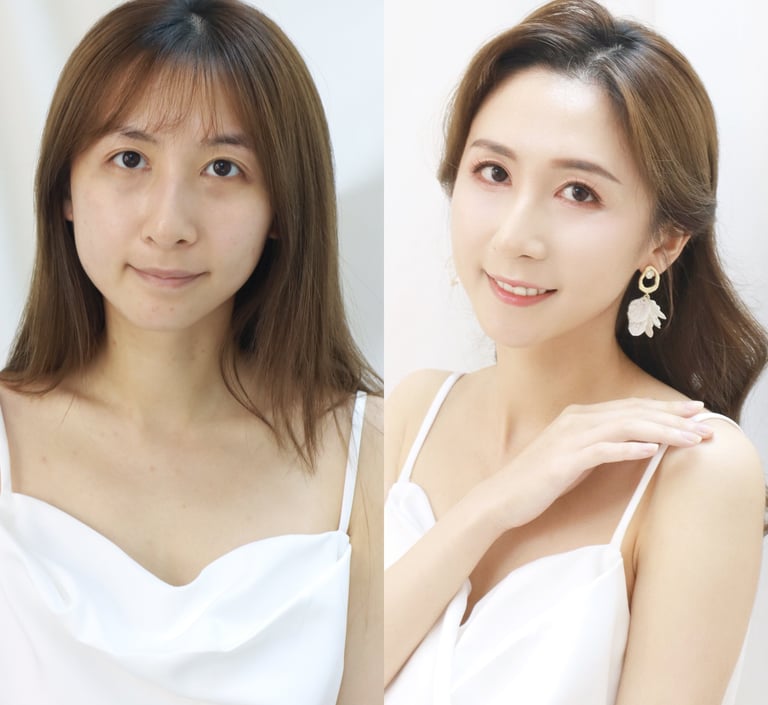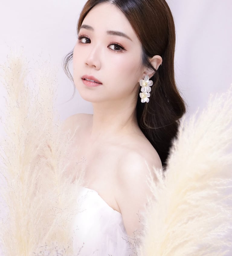 專長於根據新娘的獨特需求與個人風格,量身定制精緻妝容與造型,尤其擅長眼型調整技術,能針對單眼皮、內雙眼皮、腫眼皮及大細眼等各類眼型進行精細調整。精通各類婚禮髮型設計,無論是簡約、浪漫或精緻風格,皆能熟練地呈現出完美效果。憑藉多年婚禮現場經驗,能迅速應對各種突發情況,確保妝容與髮型始終保持最佳狀態。